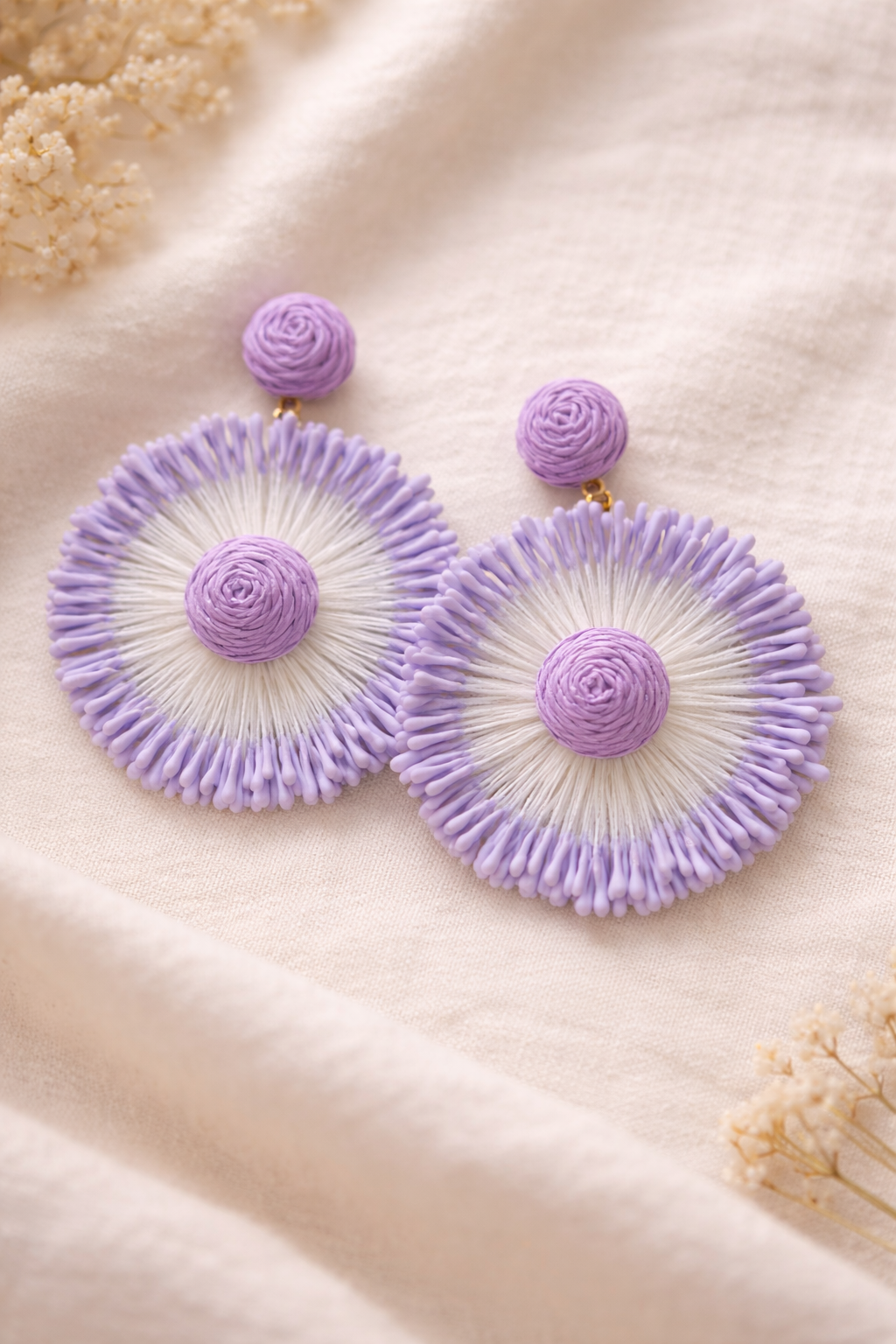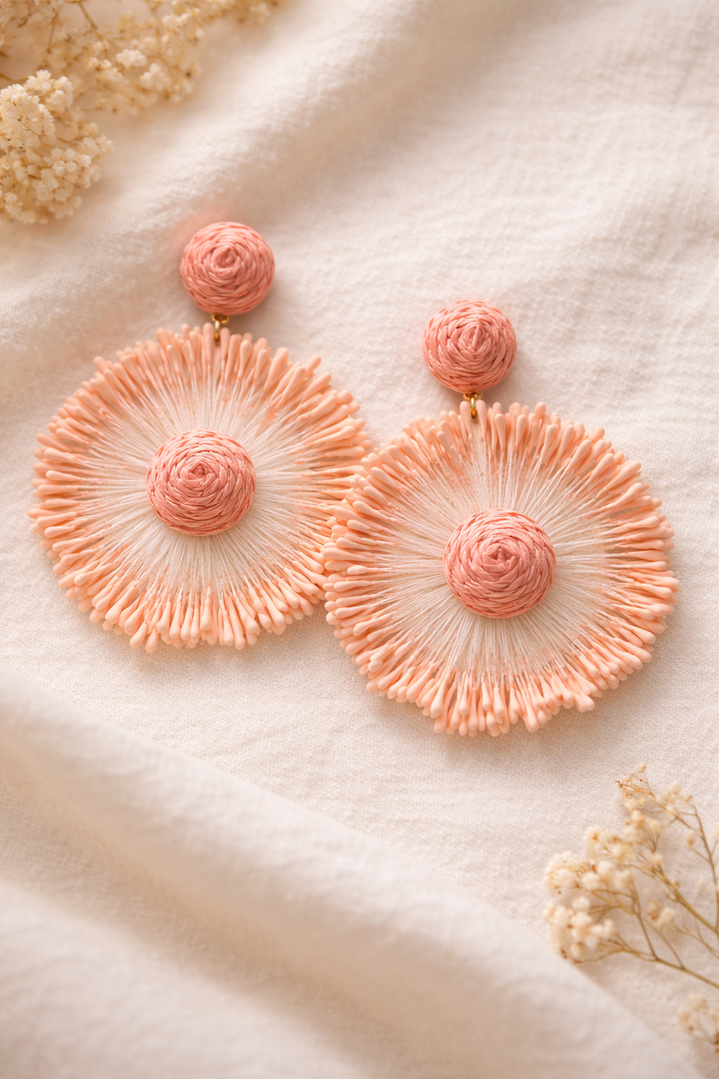 Make a graceful statement with these beautifully designed drop earrings, featuring a woven rosette stud and a bold, textured floral-inspired silhouette. Lightweight and eye-catching, these earrings add elegance and charm to any outfit while remaining comfortable for all-day wear. A gracefully touch that’s perfect for both casual and dressy occasions.